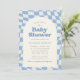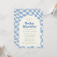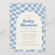 Blue Retro Groovy 70s Chequerboard Baby Shower Invitation