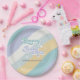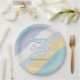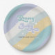 Groovy Baby! This cute baby boy shower paper plate is perfect for a hippie, retro or 70s theme baby shower.  With it's 70s style text and pastel blue colourful waves, it is fun and whimsical, just like a bouncing baby boy.