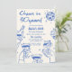 Blue Retro Hand Drawn Funky 30th Birthday Invitation