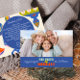 Retro tree ornaments make this holiday greeting colourful and nostalgic. One photo on the front and space for a personal message on the back.