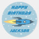 Blue Retro Rocket Ship Personalised Birthday Boy Classic Round Sticker
