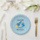 Blue Retro Rocket Ship Personalised Birthday Boy Paper Plate