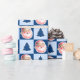 blue Retro Santa Claus Christmas Tree Tartan Plaid Wrapping Paper