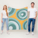 Blue retro style circles on yellow background fleece blanket