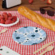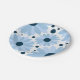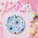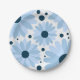 Blue retro style daisies and dark blue dots paper plate