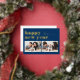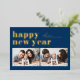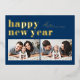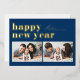 Happy New Year! Send your holiday greetings to family and friends with this customisable photo New Year card. It features retro bold typography on a navy blue background. Personalise by adding your details. This gold foil New Year card is available on other cardstock. Matching items are available.