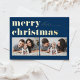 Blue Retro Typography Merry Christmas Two Photo Foil Holiday Postcard