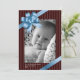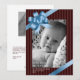 Blue ribbon bow frame holiday miracle baby first card