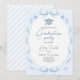 Celebrate her achievement with this "Blue Ribbon Coquette" graduation invitation. Featuring an elegant oval frame made of flowing watercolor ribbons and charming bows. This sophisticated dusty blue design with a classic grad cap is perfect for a Class of 2026 party. Ideal for graduates seeking a timeless, feminine, and high-end aesthetic for their high school or college celebration.