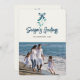 Mistletoe tied with a blue ribbon in a modern style. Share your family season's greetings with this pretty card. Front can be customised - the season's greetings and family name and year. Add your own family photo for an eye-catching holiday card.