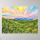Watercolor of a sunset over the Blue Ridge Mountains in North Carolina, USA.