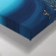 Waves of vibrant blue and aqua flow across the image, interspersed with shimmering gold accents. The colours swirl and blend, giving a sense of movement and elegance.