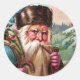 Blue Robe Santa Claus Smoking Pipe - Christmas Classic Round Sticker