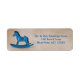 These sweet baby boy return address labels have a warm brown smokey rustic background. A wooden turquoise rocking horse is featured with coordinating blue customisable text. Great for baby boy shower, birth announcements, and thank you cards. Also perfect for a western, cowboy, rocking horse, or pony themed birthday party!