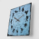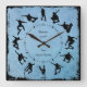 Keep your eye on the time while showcasing your dedication to the skate life with this eye-catching blue and black square wall clock. The design features a bold and energetic collection of skateboarder silhouettes executing various grinds and tricks, creating a visually engaging display. Add your name, the coordinates of your favourite skate park, an inspirational skateboarding mantra, or any text that resonates with your skateboarding journey. This clock serves as a constant reminder of your passion and makes a fantastic gift for any skater who appreciates unique and expressive decor.
