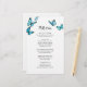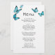 Blue romantic exotic beautiful butterflies. Elegant modern wedding menu.