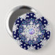Snowflake with my drawing of a stained glass window from an old European church: a rose window, with touches of a wide variety of colours, including shades of blue, on a navy blue background. Inlay of light blue rhinestones (drawn). For an old times winter pattern. This motif is also available in cardinal red in my “cardinal red rosace” collections.