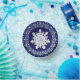 Snowflake with my drawing of a stained glass window from an old European church: a rose window, with touches of a wide variety of colours, including shades of blue, on a navy blue background. Inlay of light blue rhinestones (drawn). For an old times winter pattern. This motif is also available in cardinal red in my “cardinal red rosace” collections.