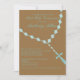 Start your celebration off with invitation for your special boy's First Holy Communion. It's set on a brown background with blue, dainty, glass looking rosary beads hung through this invite. Personalise with your party information.