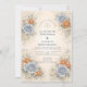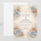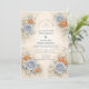 This romantic wedding design features soft blue and peach florals arranged in a delicate garden composition. Inspired by wildflowers and classic botanical illustrations, the artwork blends muted neutrals with airy florals for a timeless, refined look. The elegant layout and gentle color palette make it ideal for couples planning a nature-inspired wedding with a graceful, understated aesthetic that feels both modern and enduring.