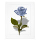 Blue Rose of Enchantment: A photograph of a single rose against a white background with a digitally created blue colour and a shadow for dimension.
