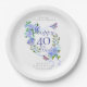 Blue Rose Ribbon 40th Birthday Paper Plate