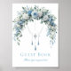 Invite family and friends to leave a lasting memento of your son's special day with this Blue Rose & Silver Cross Baptism Guest Book Sign. The design features a breathtaking overhead arch of watercolor roses in shades of dusty blue and crisp white, intertwined with delicate eucalyptus greenery. Suspended from the center of the floral arrangement is a detailed silver filigree cross, elegantly accented by shimmering metallic chains and tassels for a touch of refined sophistication.