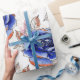 Wrap your presents in style with this elegant floral pattern. It features beautiful, artistic watercolor roses in deep blue hues, accented with vibrant orange tips. The bold black outlines give it a modern, illustrative feel, set against a subtle, light ornamental scroll background. This sophisticated and vibrant design is perfect for birthdays, anniversaries, weddings, or any special occasion that calls for a touch of artistic flair.