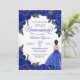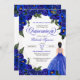 Quinceanera invitation in royal blue rose with gold accents and a girl with elegant ball gown. Check the shop for this invitation with girls in different hair colours and skin tones.