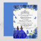 Celebrate the enchantment of your Quinceañera with our exquisite royal Blue Floral Invitation adorned with delicate butterflies and a regal crown motif.dusty blue background sets the perfect tone for the occasion,