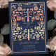 Step into a tale of romance and legend! These mediaeval fantasy wedding invitations feature a regal sword entwined with rose gold florals on a deep blue backdrop. They are perfect for couples seeking an enchanting and timeless touch for their special day. Note that the rose gold on these invitations are NOT printed with real foil and are printed in flat colours.