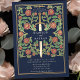 Set the tone for your mediaeval fantasy wedding with a bold invitation design—a grand sword surrounded by florals against a blue background. Perfect for couples dreaming of an epic, romantic celebration. Personalise it for your needs. NOTE: The gold featured in this design is NOT real foil.