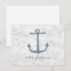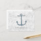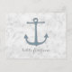 Perfect for a nautical themed wedding is this Rustic Anchor Wedding Table Number Postcard with a blue boat anchor on a light grey marble look background. This classic and simple table card is easy to customise with your wedding details. Find more personalisation options by clicking Customise.