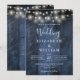 Blue Rustic Barn Wood String Lights Wedding Invitation