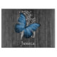 Create a unique gift with a Blue Rustic Butterfly Personalised Glass Cutting Board. Cutting board design features a butterfly against a white leaf vine and dark grey wooden background with a place to personalise with your name. Additional items available with this design as well. Please contact me directly for assistance with personalisation.