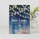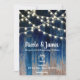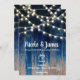 Blue Rustic Coastal Barn Wood & Lights Wedding Inv Invitation