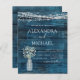 Rustic Farmhouse String Lights and Jar of Baby's Breath Wedding Invitations on Wood background - includes beautiful and elegant script typography with modern Country Farm House Sparkle for the special Wedding day celebration.