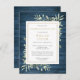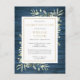 An elegant botanical personalised rustic blue wood panels watercolor greenery celebration of life remembrance invitation postcard. Designed by Thisisnotme©