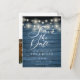 Blue Rustic Lights Photo QR Code Save the Date Postcard