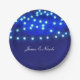 Blue Rustic Night String Lights Wedding Plates. Customise with any text. Matching items are available.