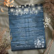 This stylish rustic wedding schedule-timeline featuring pretty string lights and mason jars can be personalised with your wedding details in chic white lettering on a blue wood panels background. Designed by Thisisnotme©