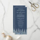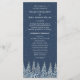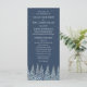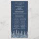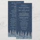 Custom wedding program for your rustic winter wedding with a snow covered country forest at night in navy blue and white. Customize these order of ceremony cards with your own text.