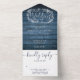 Blue Rustic Wood Floral Garland Monogram Wedding All In One Invitation