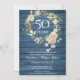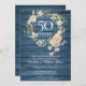 Blue Rustic Wood Roses Garland 50th Anniversary Invitation