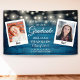 Blue Rustic Wood String Lights 2 Photo Graduation Banner
