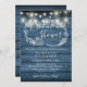Blue Rustic Wood String Lights Bridal Shower Invitation