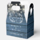 An elegant rustic wedding favour box featuring string lights and hand-drawn foliage floral on vintage blue wood panels. You can personalise with your own thank you message on the reverse. A perfect way to say thank you to your guests! Designed by Thisisnotme©
