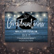 Featuring string lights and blue rustic wood panels, this stylish graduation party invitation can be personalised with your celebration details. Designed by Thisisnotme©
