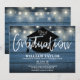 Blue Rustic Wood String Lights Graduation Party Invitation