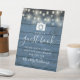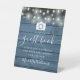 Blue Rustic Wood String Lights Photo Guest Book Pedestal Sign